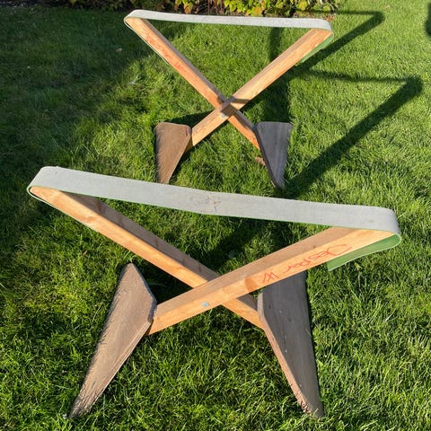 Kajakstativ til 16 kajakker, der kan lægges forskallingsbrædder på den eller skumvugger, som på billede med kajakker.