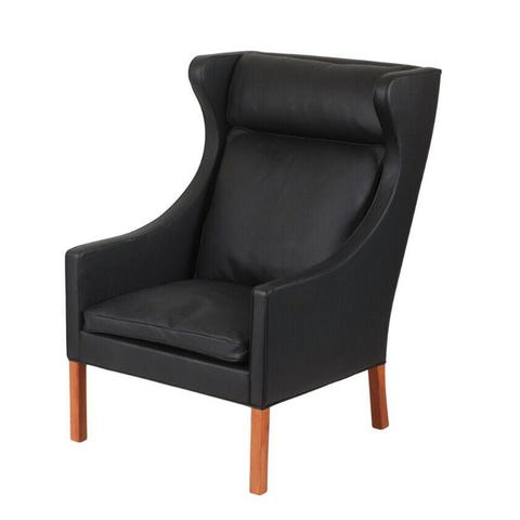 Børge Mogensen Øreklapstolen model 2204 i originalt sort læder fra 90'erne. Stolen fremstår med flot patineret læder.