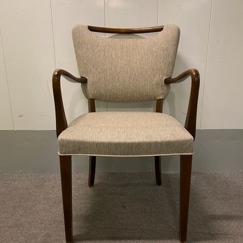 Loungestol / lænestol på stel af palisander med senere grå uld .