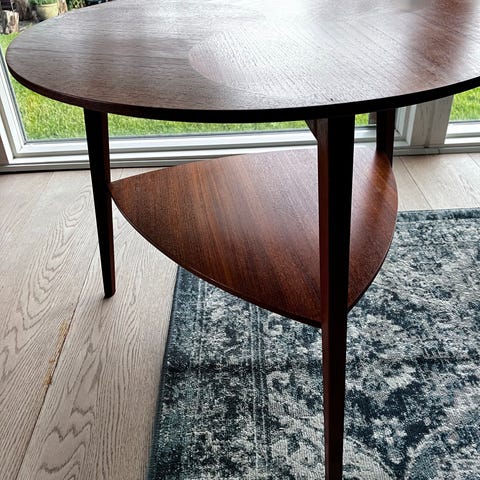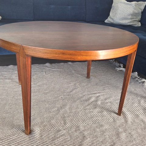 Stand: Benene fremstår med minimale brugsspor og bordpladen er renoveret.