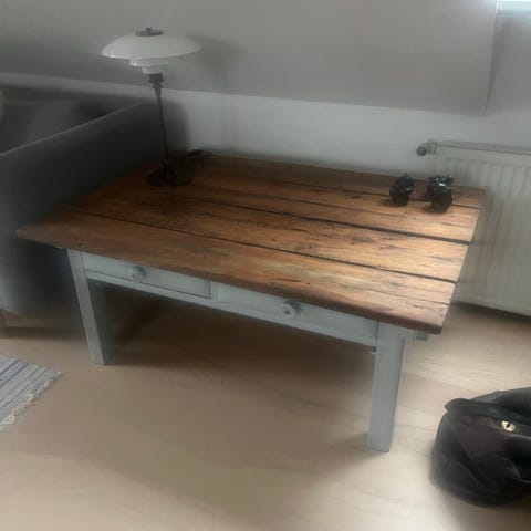 Andre borde, Vintage, andet materiale, b: 78 l: 124, Smuk bordplade i linolium med egetræskant.