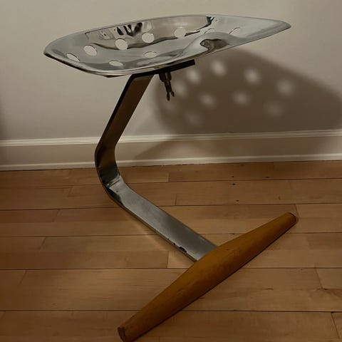Flot skulpturelt design fremstillet i et begrænset antal. Lamineret bøgetræ og stål. Flot stand med begrænset patina. Se mere i forretningen og på hjemmesiden.