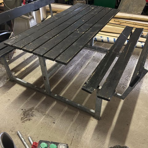 Bænkene måler 150 x 40 cm. ( der er 2 stk)