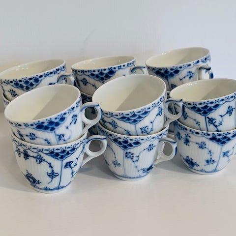 Musselmalet halvblonde kaffekop - 3 dele