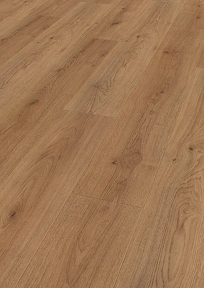 Rustikt plankelaminatgulv, der smukt følger den aktuelle rustikke trend. Fasen langs alle kanter giver et autentisk plankelook, mens 3D/synkrontryk overfladen tilføjer dybde og naturlighed. Gulvet har høj slidstyrke i klasse 23/33 – AC5, hvilket gør det velegnet til både private boliger og erhvervsområder.