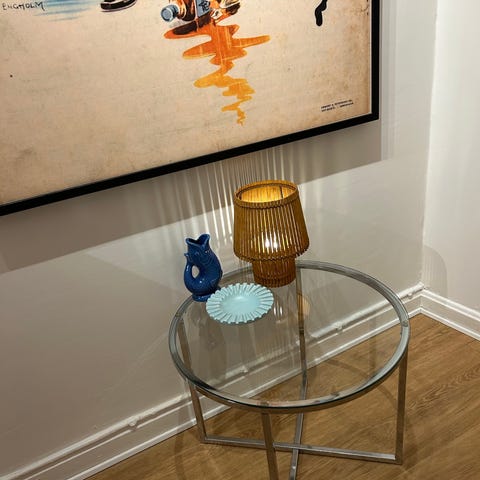 Sofabord vintage 106 cm med glasplade