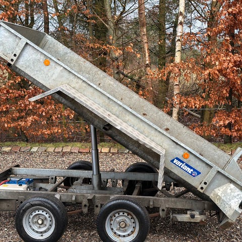 fabriksny tiptrailer som også kan bruges som maskintrailer pga lav læssehøjde 46cm, skovlplatfom, hel stålbund, led lygtesæt, aluramper, el tip, 10 stk surringsøjer, leasing tilbydes, 14400kr i udbetaling, 1330kr om måneden i 48 måneder, 7200kr i restværdi, alle priser er + moms, vi har altid 120 maskiner på lager, ring for fremvisning.