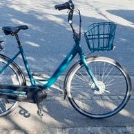 Cyklen er udstyret med en stor rummelig aluminiums kurv og en praktisk styrlås, som låser styret fast således at forhjulet ikke tipper rundt og vælter cyklen når der er vægt i kurven. Modellen har 7 indvendige Shimano Nexus gear, fodbremse og en rullebremse foran. Og du opnår masser af komfort med den affjedrede sadelpind, som mindsker stød i lænd og ryg. Lygterne er fastmonteret og drives af elcyklens batteri, så der skal du ikke tænke på at skifte batterier.