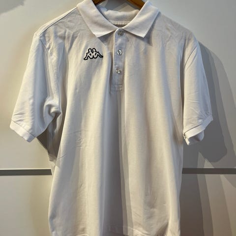 Polo t-shirt, Kappa, str. L, Hvid med lidt blåt, God men brugt