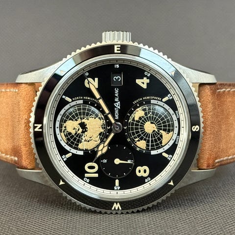 En af de mest unikke funktioner er dens verdens-tidskomplikation, som viser tiden på to kuppelformede glober, der repræsenterer den nordlige og sydlige halvkugle. Disse glober roterer i modsatte retninger og gennemfører en fuld rotation hver 24. time. Uret har desuden en blå Sfumato kalveskindsrem med hvid syning og en titanium foldespænde, som sikrer både komfort og holdbarhed.