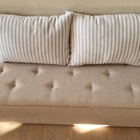 Bænk med opbevaringsrum hvid 76 cm. En bænk med et godt opbevaringsrum, der kan rumme 80 liter. Denne bænk kan stå for enden af en seng eller den kan stå i din garderobe. God til at sidde på hvis du skal skifte sko. Der kan sidde to personer på den. Kraftig bænk.