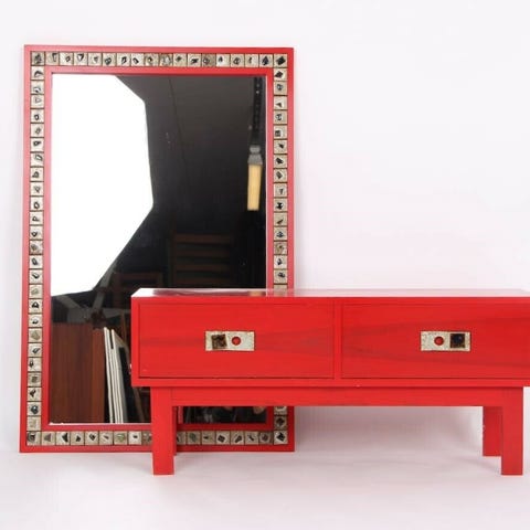 Kommodesæt. Produceret hos Georg Petersens Møbelfabrik, Selectform. Design formentlig Poul Nørreklit. Original sort fyrretræ. Spejlramme og greb på kommode med keramikgreb. Spejl: 80x120 cm. Se mere på hjemmesiden. Fragt til hele Europa kan købes på hjemmesiden.