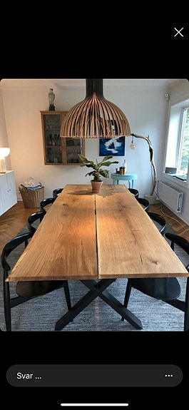 Plankeborde i ovntør eg, 4cm tyk, og valgfri behandling kan laves på bestilling eller fra lager. Vi har som regel borde i korte længder på 130-180 på lager (og også lange, se de øvrige annoncer).