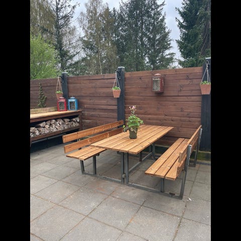 Havebord og bænk af planker