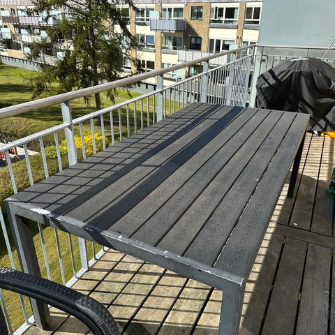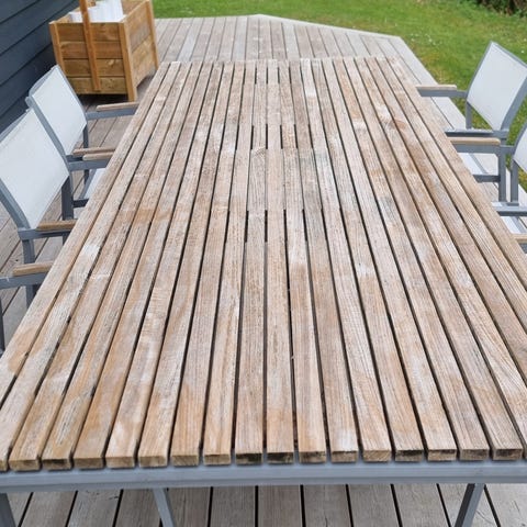 OBS - skal bordet stå helt ude? Så har vi et billigere alternativ i lufttørret egetræ.