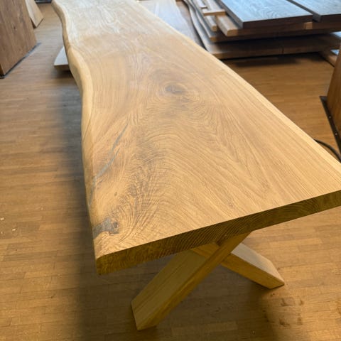 Bænk i massiv ovntør egeplanker laves
