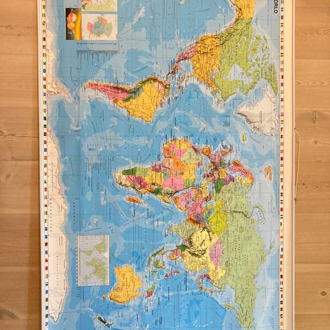 Verdenskortet er fremstillet af slidstærkt stof, ideelt til at fastgøre nåle hvor du har rejst. Har UV-beskyttende belægning og er klar til at blive hængt op hjemme hos dig. Fås i flere designs og flere størrelser med læsbar tekst for alle 197 lande, så det er nemt at markere dine rejser. Vælg selv overskrift på kortet.