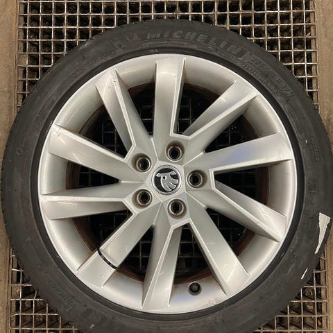 4 STK 17” Skoda fælge. Men næsten nye sommerdæk fra Michelin 205/45-17”
