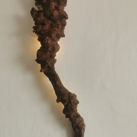 Derefter beskyttet med naturlig olievoks, som giver den smukke glød og charme. Den rå skønhed passer perfekt ind i atmosfæren i moderne, minimalistiske interiører. Lyset, der udsendes fra lampen udsendes på en blød og naturlig måde.