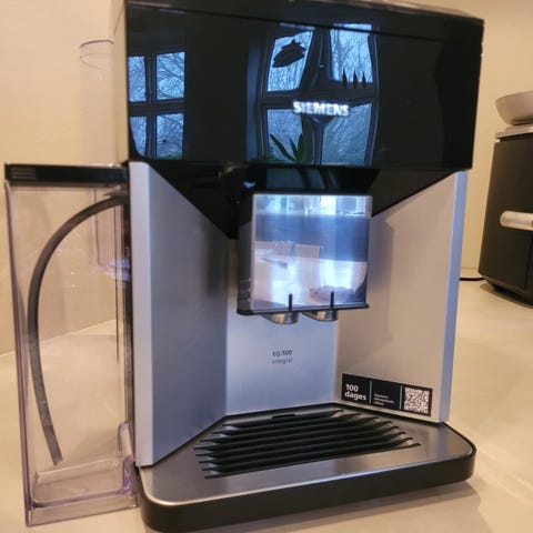 Integreret mælkebeholder, enkel at tage ud, passer i køleskabsdøren og tåler maskinopvask