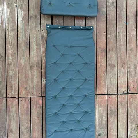 Hyndesæt i kanvas direkte færdigt med knapper og læderremme, nem at montere. Stolen medfølger ikke, men vises her som model.