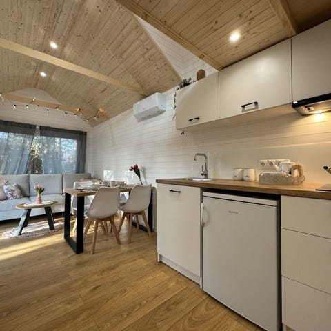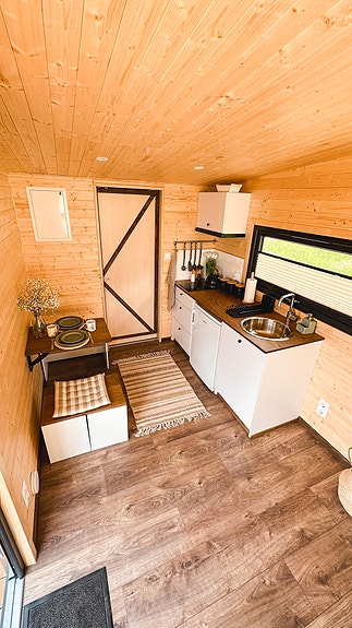 Maya is one of the most mobile tiny houses. She is the dream home of the freedom-loving vagabond. Maya has a unique design with cozy angles and corners, as well as a smart floor plan of 20 m2, including the loft, which makes it easy to fall in love with her. We are sure that you will feel at home no matter what adventure you are on.