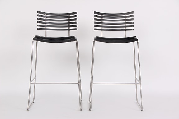Sofabordet er restaureret og fremstår uden eller med helt begrænsede brugsspor. Fremstillet med en massiv sæbebehandlet bøge træs bordplade med indfræset ben i rustfrit stål. 90x90x45 cm.