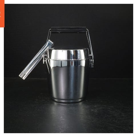 Rustfrit stål, Skål/isspand, Lille rustfri skål - evt til isterninger. Med flettet håndtag