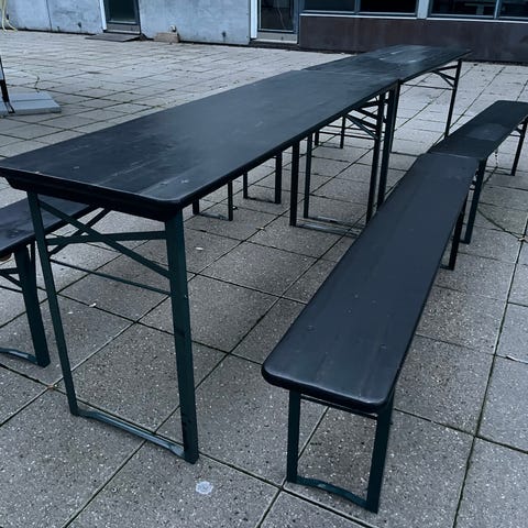 Have, ude, frokost, café, kantine, køkken, spise, mad, bænk, bænke, bord, borde, møbel, møbler,