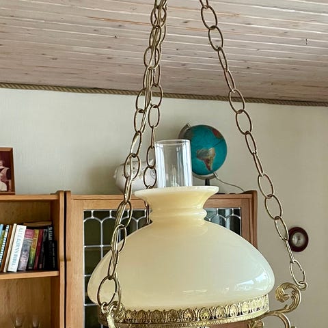 Lampen har stadig den oprindelige beholder, til petroleum.