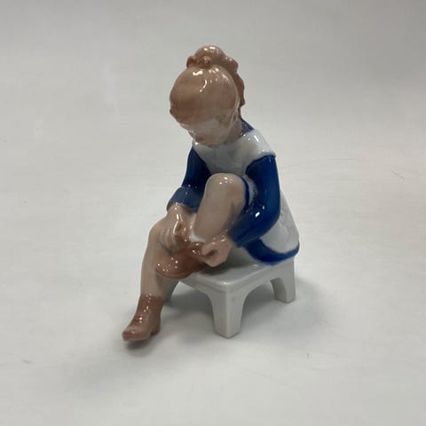 Bing & Grøndahl B&G 2373 Marianne Pige på skammel binder sko 15,5 cm I fin og hel stand. Claire Weiss 1964