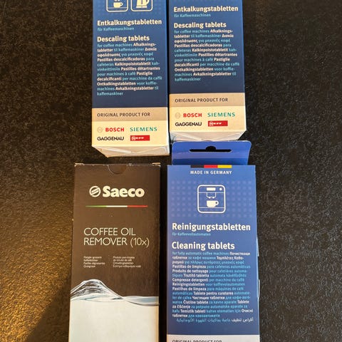 Pakke med 10 rengøringstabletter, som fjerner kafferester og renser maskinen.
