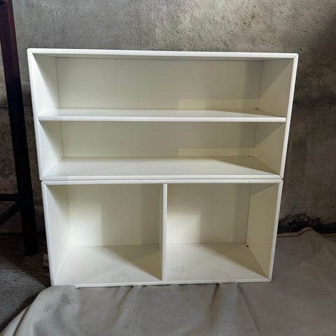 Sorteringsreol i flot stand, i blommefarvet udgave.
