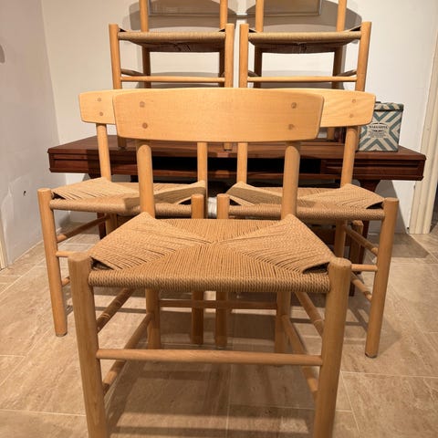 Originale BM J39 stole ny-renoveret sæbebehandlet bøg. Nyt fletsæde af originalt papirgarn, flettet af professionel. Stolene er i høj kvalitet, og er stemplet.