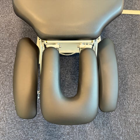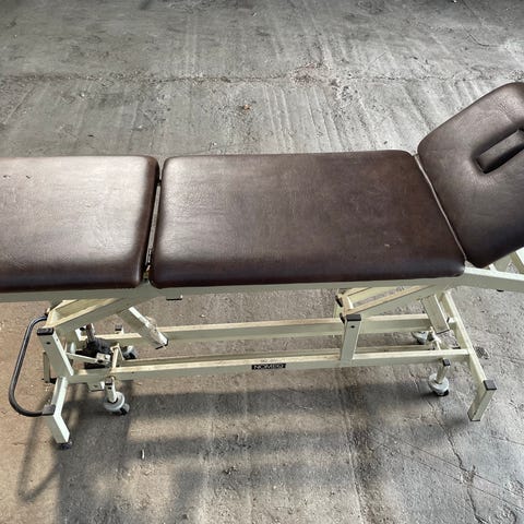 Sættet består af behandlingsstol/briks med skuffer under, elegant rengøringsvenligt glasbord samt en professionel luplampe.