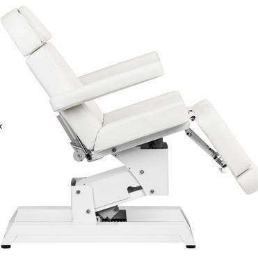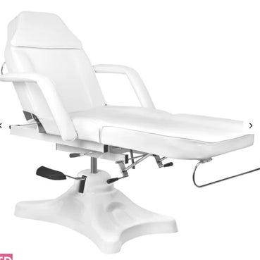 Super flot og praktisk behandlerbriks i gråt kunstlæder for nem rengøring. Både højde, hoved og fodende kan justeres via en hydraulisk pumpe.