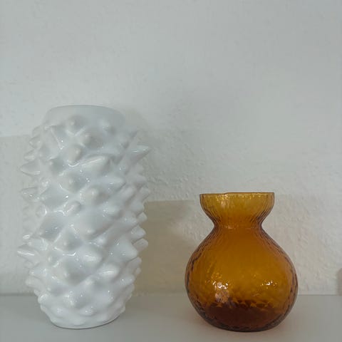Glas, Vase, Ingrid Glashütte, Rav farvet muligvis tiltænkt som hyacint vase. Med luftbobler. Mundblæst tysk glas. Den fremstår flot og intakt, i bunden kan man ane en smule kalk rest. Den måler 19,7 cm høj og vejer 225 gram.