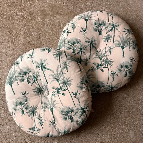 Her sælges 3 cirkelriunde hynder med stof, Melrose farve 06. Praktisk sandfarvet stof og hynderne har skridsikkert underlag.