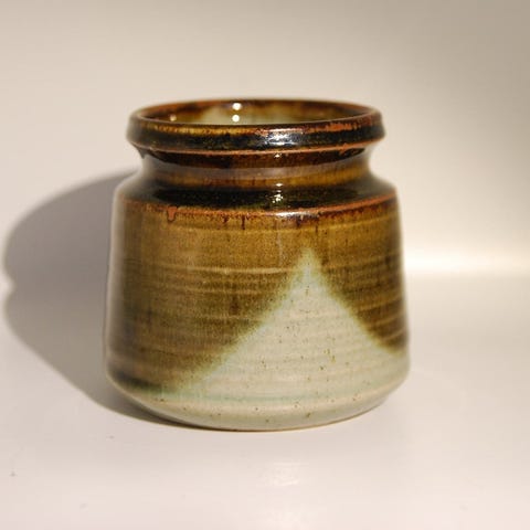 Keramik, Vase, Har været brugt som lystage. Signaturen ligner Ulla Hjorth, men genstanden gør ikke. Den fremstår med et mini skrab omkring toppen. Vasen måler 5 cm høj.