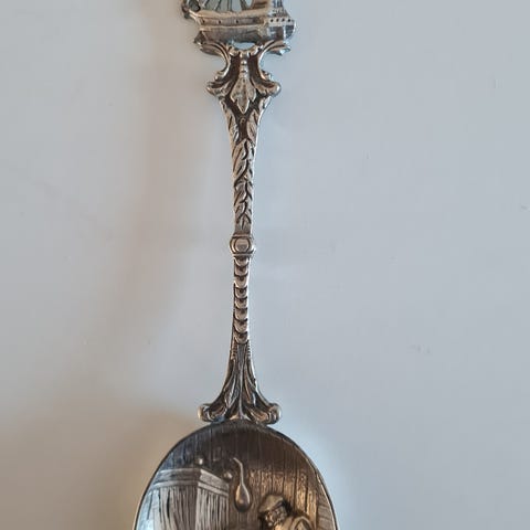 Dronning Achantus kompotske, trenårnet sølv 1926. Med monogram. Vælgt 48 gram. Flot stand. Fremstillet hos Georg Jensen Danmark.
