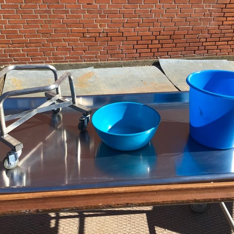 Båre med aftapningshul 60 x 211 cm - Rustfri - ( kr. 4.800,- + moms )