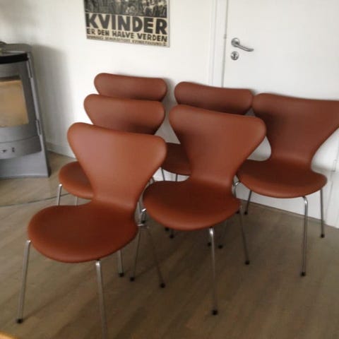 Nypolstrede stole model 3107 designet af Arne Jacobsen. Her polstret med møbelstoffet Lillehammer som er 70% Genanvendt uld, 25% Polyamid, 5% Blandede fibre. Husk at vælge farve iblandt en aktuel farveskala og en slidstyrke over 110.000 Martindale. Alle stole er sorteret før polstring, og alle har fast ryg og er monteret med nye originale fødder med glat eller filt-bund. Du vælger selv.
