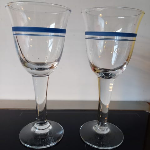 Holmegaard glasværk, Blå klokke glas, designet af Ole Winther i ca. 1974. Flot stand uden beskadigelser. Vælg venligst øl eller snapseglas.