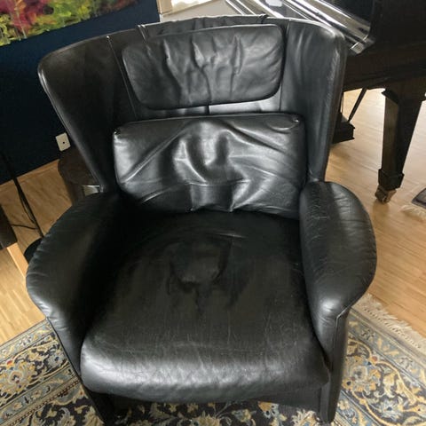 Franz- Josef Schulte har designet denne behagelige fodskammel for firma, De Sede. Fodskamlen kan bruges alene eller sammen med den smukke lænestol model DS-23. Her en fodskammel betrukket med originalt sort læder og sorte ben. Sædehøjde cirka 42 cm.