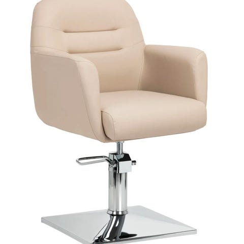 Ekslusive frisørstol i sort med flot guldfarvet stel, perfekt til den stilfulde klinik.