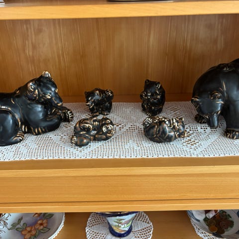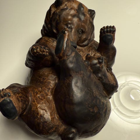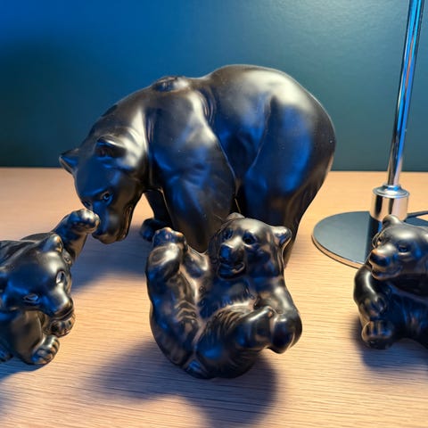Brun bjørnemor, med to unger, hvor den éne dier.