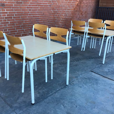 Der er stoleophæng under bordene,