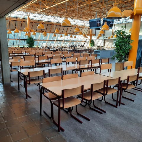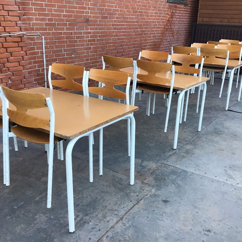 Virkelig flotte Kantineborde og kantinestole - dog med minimal brugsspor & patina,