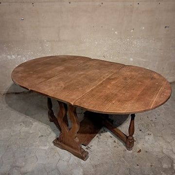 Flot og praktisk gateleg bord i egetræ med fine vintage detaljer af snoede udskæringer, snoede ben. Gammelt fint snedkerbord kan også bruges som sofabord. se billederne for standen, men fin stand for alderen med brugsspor.