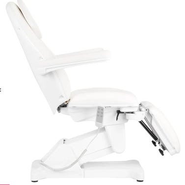 Super flot og praktisk behandlerbriks i hvidt kunstlæder for nem rengøring, kommer med hydraulisk pumpe som gør både højde, fod og hovedende kan justeres manuelt. Der er desuden en holder i fodenden til en papirsrulle.